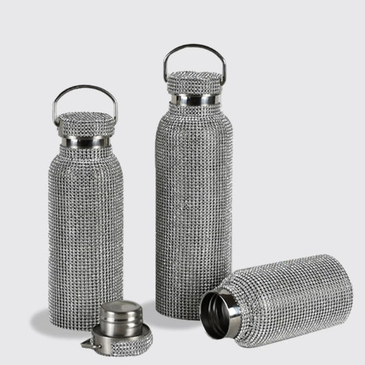 Crystal Rhinestone Water Bottle SILVER