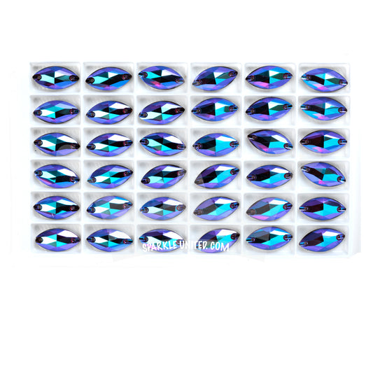 SIAM SHIMMER NAVETTE SEW-ON CRYSTAL 3220 FLAT BACK